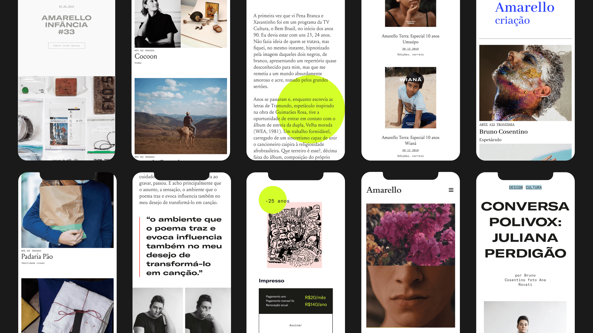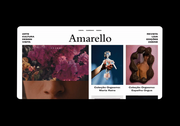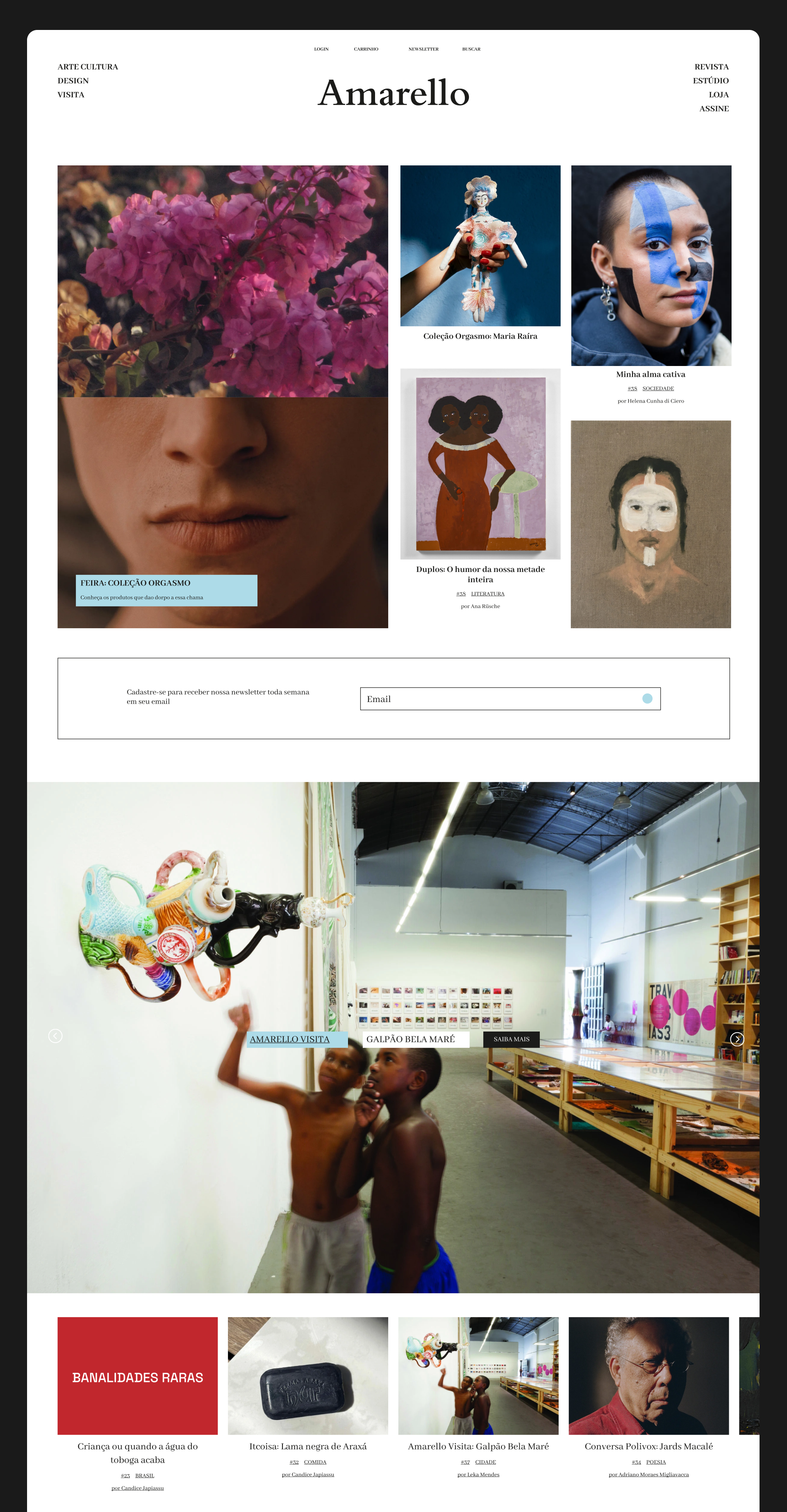 Amarello is a collective that believes in the power and individual transformation capacity of human beings. Through monthly publications, which provoke reflections on art, design, beauty, philosophy and architecture, the design of the site was thought to enhance the imagery and photographic aspect of the magazine.